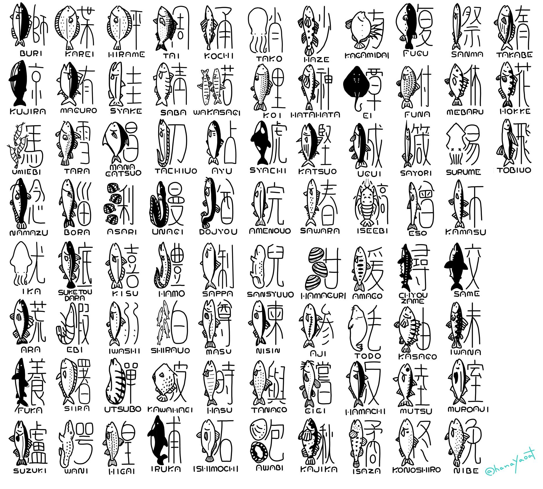 魚に関する漢字を図案化したものが面白い これなら教材としても使えそう 話題の画像プラス