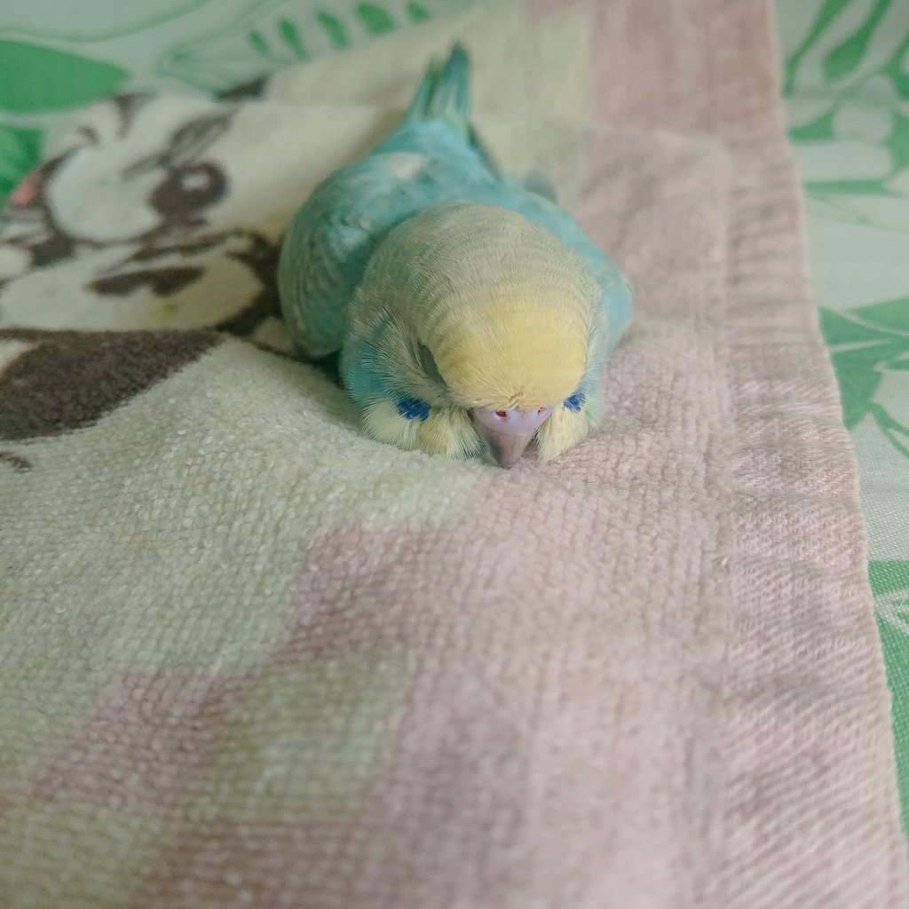 セキセイインコの中雛です 羽に顔を突っ込んで寝ているのは病気か
