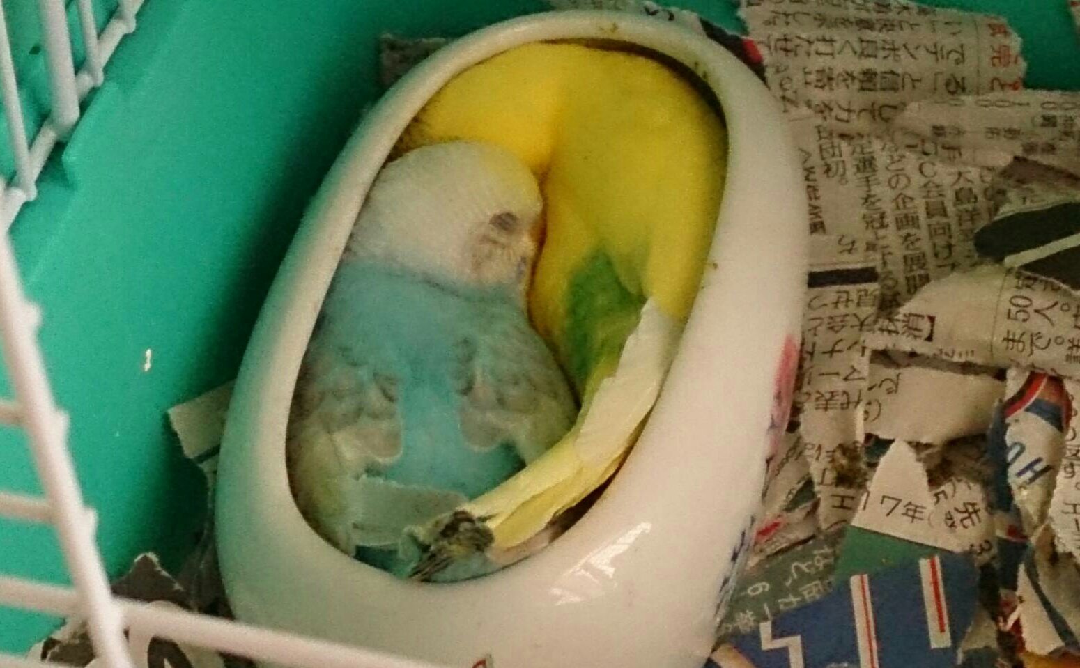 まるで猫 水入れにぴっちり収まって眠るインコたちw えのげ