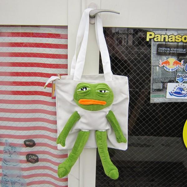 カエルのペペ ぬいぐるみ トートバッグ ホワイト 白色 Pepe The Frog