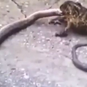 ヘビに追い込まれたカエル 逆にヘビを15分でペロリと食べる 水の