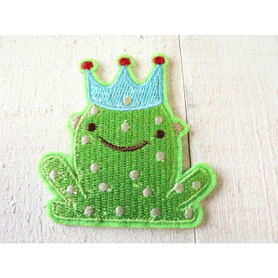 ワッペン アイロンワッペン アップリケ 王冠をかぶったカエル 蛙