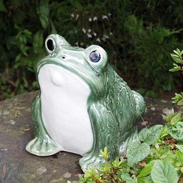信楽焼 カエル君 緑色 縁起物カエル お庭に玄関先に陶器蛙 陶器やき 蛙