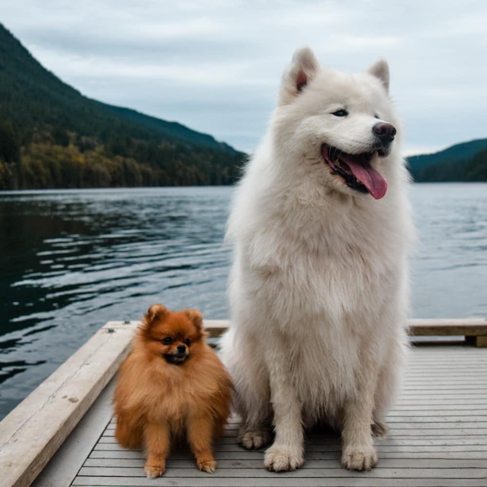 愚鈍 Pa Twitter 白ポメちゃんとお友達のサモエドさん 良き