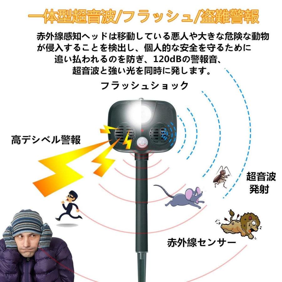 猫よけ 超音波式 動物撃退器 ソーラー充電 Ledフラッシュライト 警告