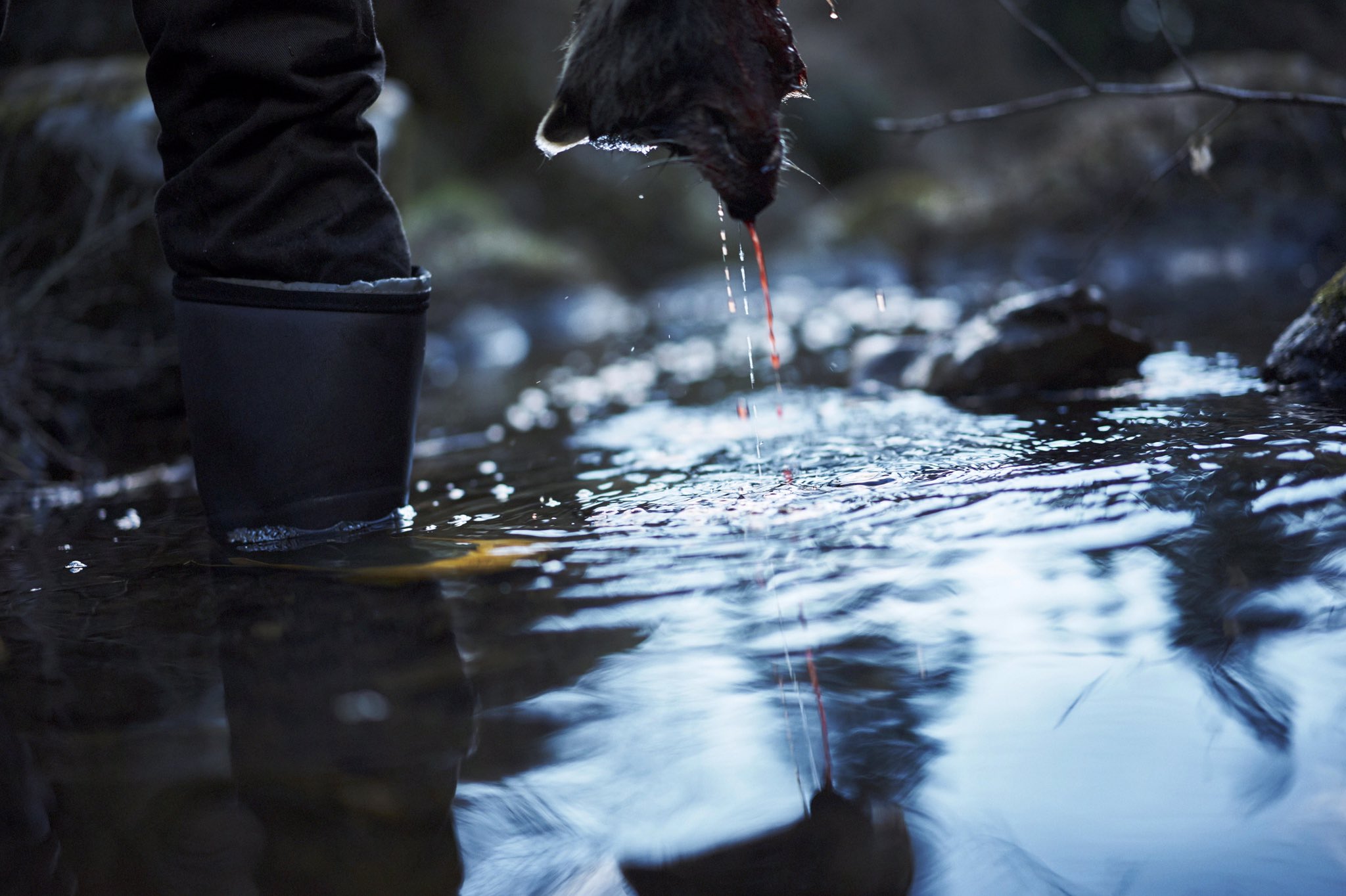 幡野 広志 On Twitter 罠にかかったアライグマをさばく 箱罠ごと川
