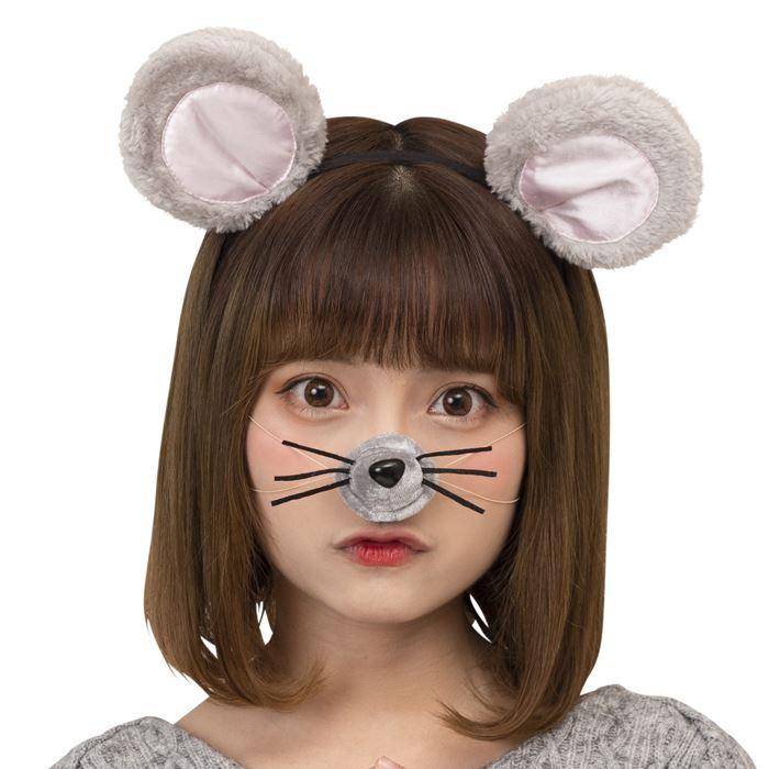 ねずみカチューシャセット 耳カチューシャと鼻のセット ネズミ ねずみ