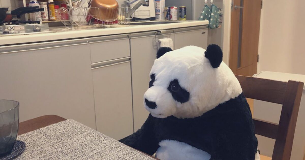存在感がすごい大きなパンダのぬいぐるみが在宅勤務の癒しに みんなの