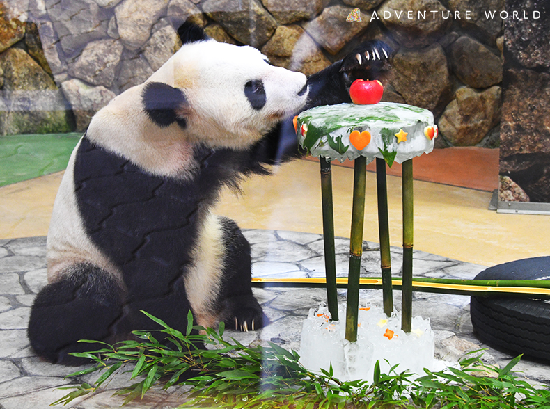 パンダ彩浜のパパ永明27歳誕生日 人間なら80歳 丈夫な歯で竹もペロリ
