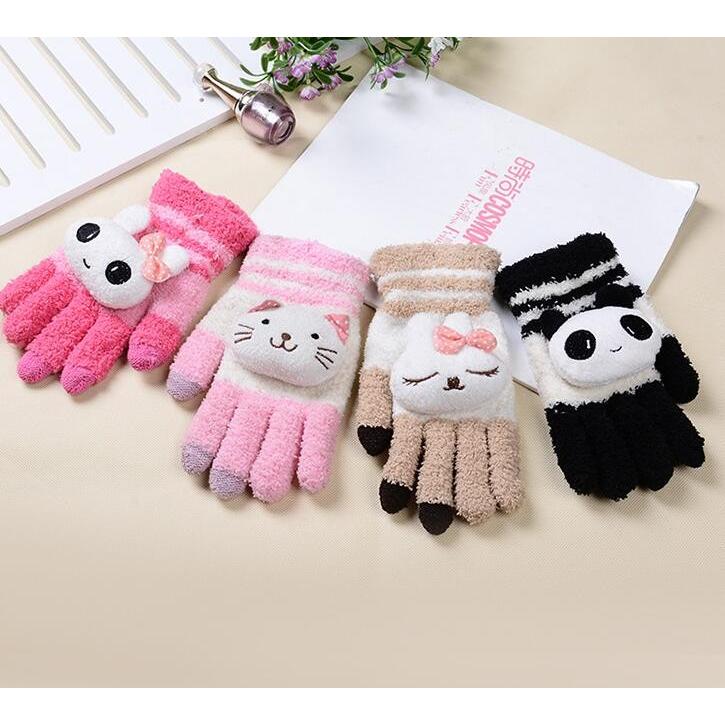 立体的なパンダが可愛いい スマホ対応 パンダ ニット手袋 女性用