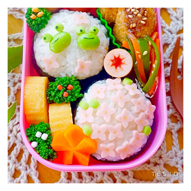 話題入り 枝豆カエル アジサイおにぎり弁当 かわいいおべんとう