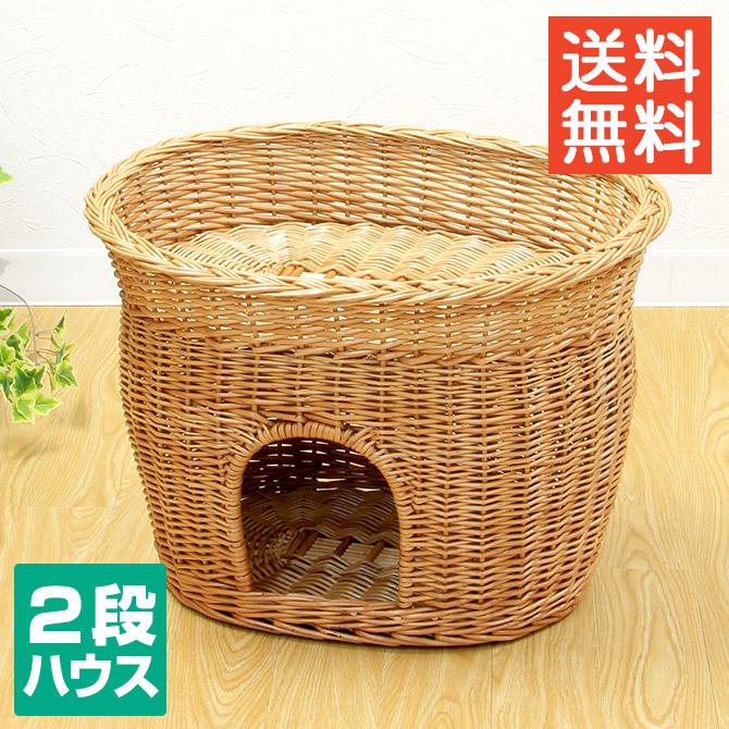 縁編みぽってり 2段ペットハウス バスケット キャットタワー ペット