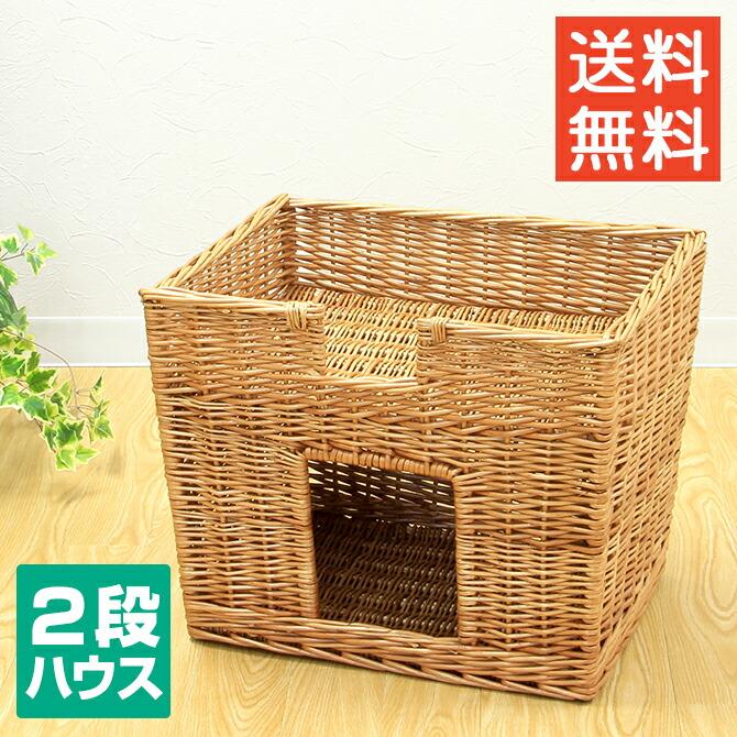 キャットハウス 2段 ちぐら風 天然素材 ウォーターヒヤシンス 幅45cm