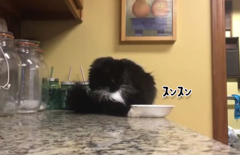 テーブルの上にある 気にくわない物 を次々と落とす猫 笑
