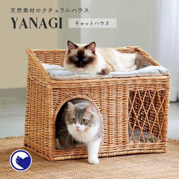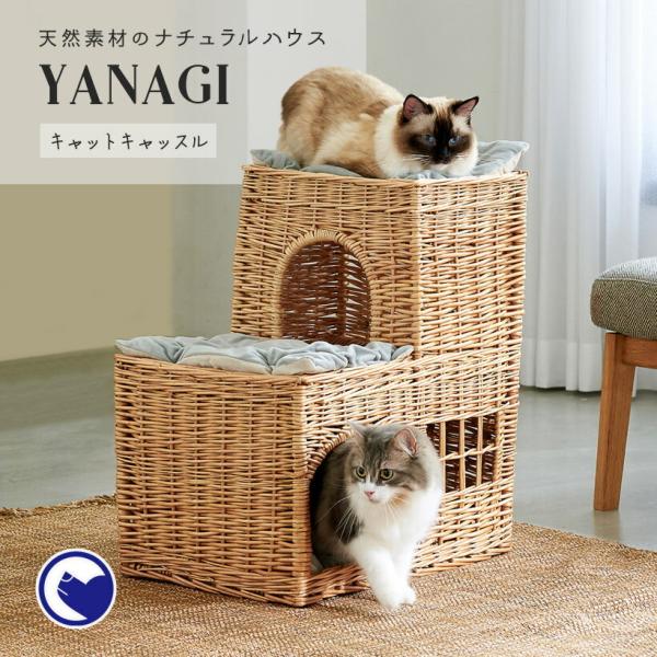 ねこ 猫 ハウス おうち 2段 多頭飼い ベッド 柳 天然素材 Yanagi