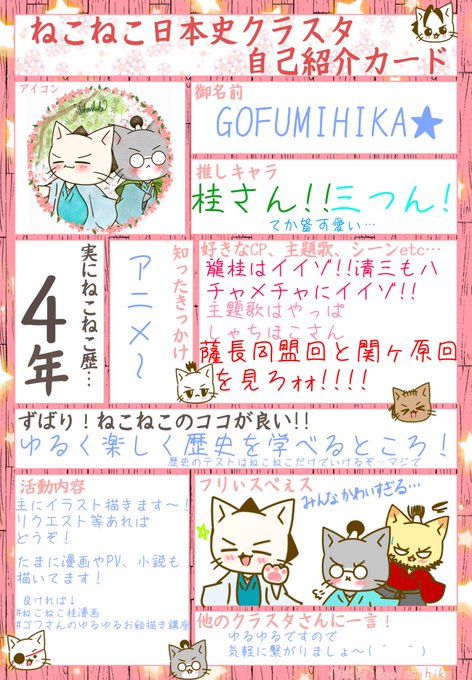 ねこねこ日本史クラスタ自己紹介カードのtwitterイラスト検索結果 古い
