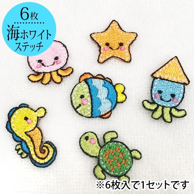 ワッペン ホワイトステッチ 海 魚 小 6枚セット アイロン 刺繍 マーク