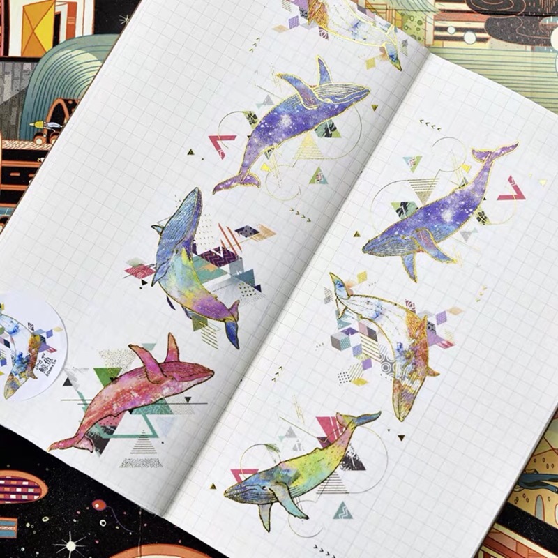 Yooy 燙金鯨魚燙金自帶離型紙循環分裝海洋鯨魚魚精緻幾何裝飾奇幻