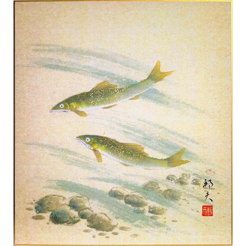 中谷文魚 鮎 色紙絵 絵画 日本画 夏 魚 メール便 ネコポス J9