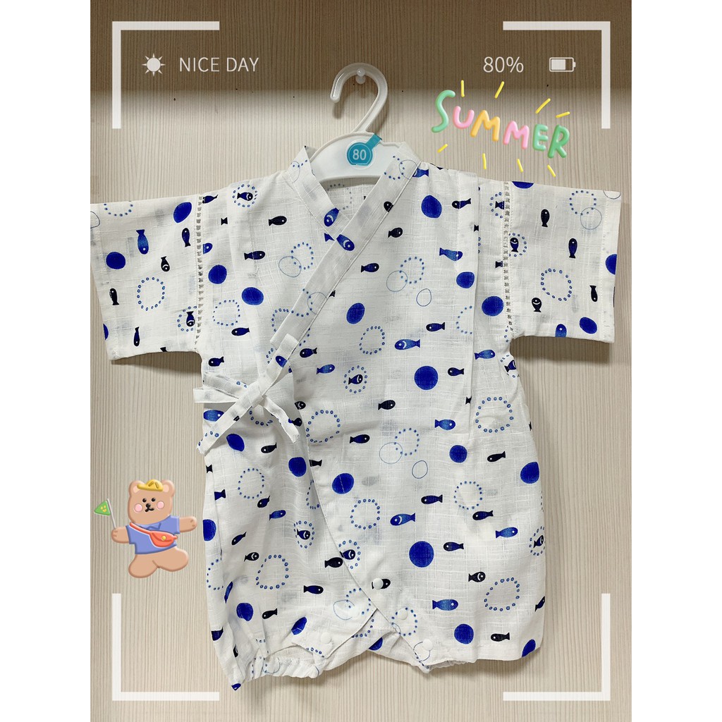 全新日本購回 特惠中幼童 小孩短袖浴衣 甚平爬服包屁衣爬爬服白色開心
