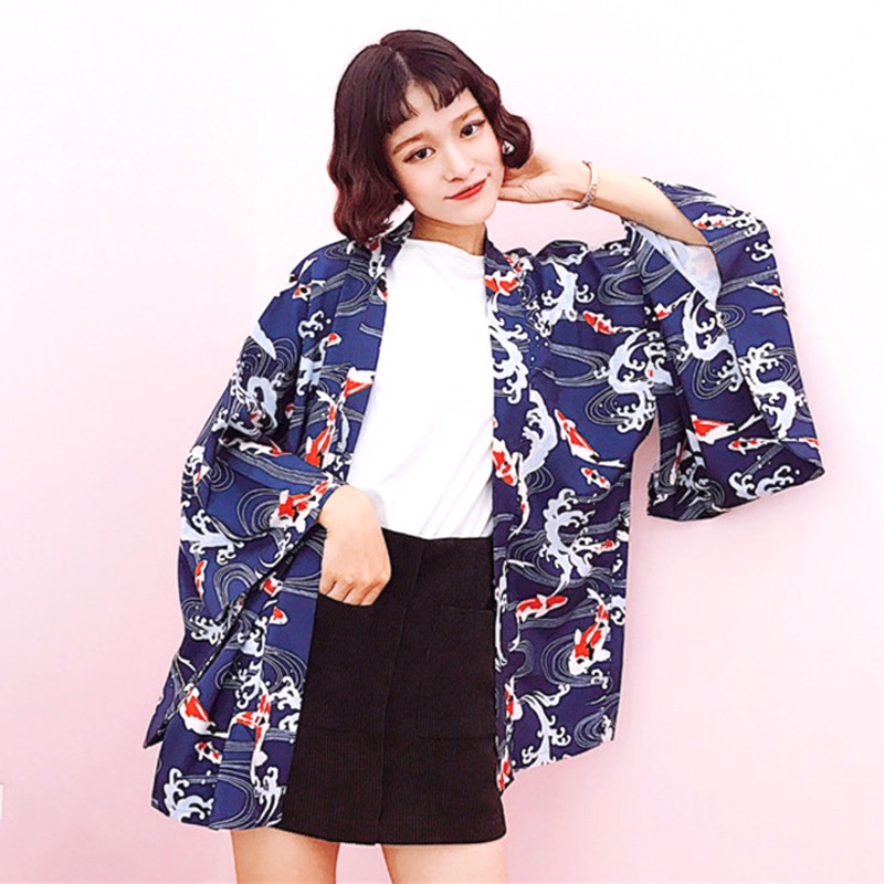 日式錦鯉魚浮世繪海浪祭典綁帶和服浴衣罩衫外套道袍 蝦皮購物