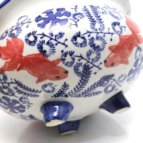 水鉢 陶器製 プランター 魚缶 金魚絵 三つ足 鉢カバー プランター