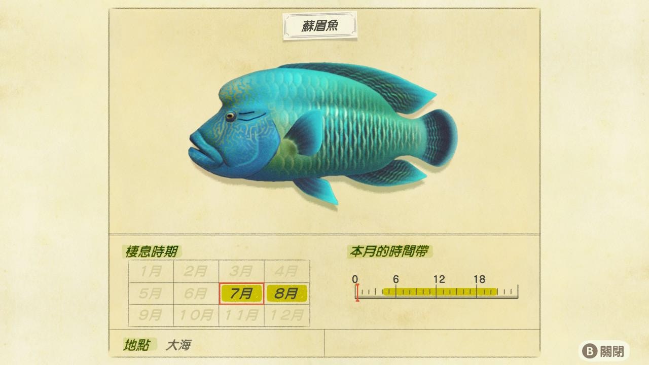 動物之森 動物森友會 攻略 7月魚類圖鑑 物價釣瀕危蘇眉