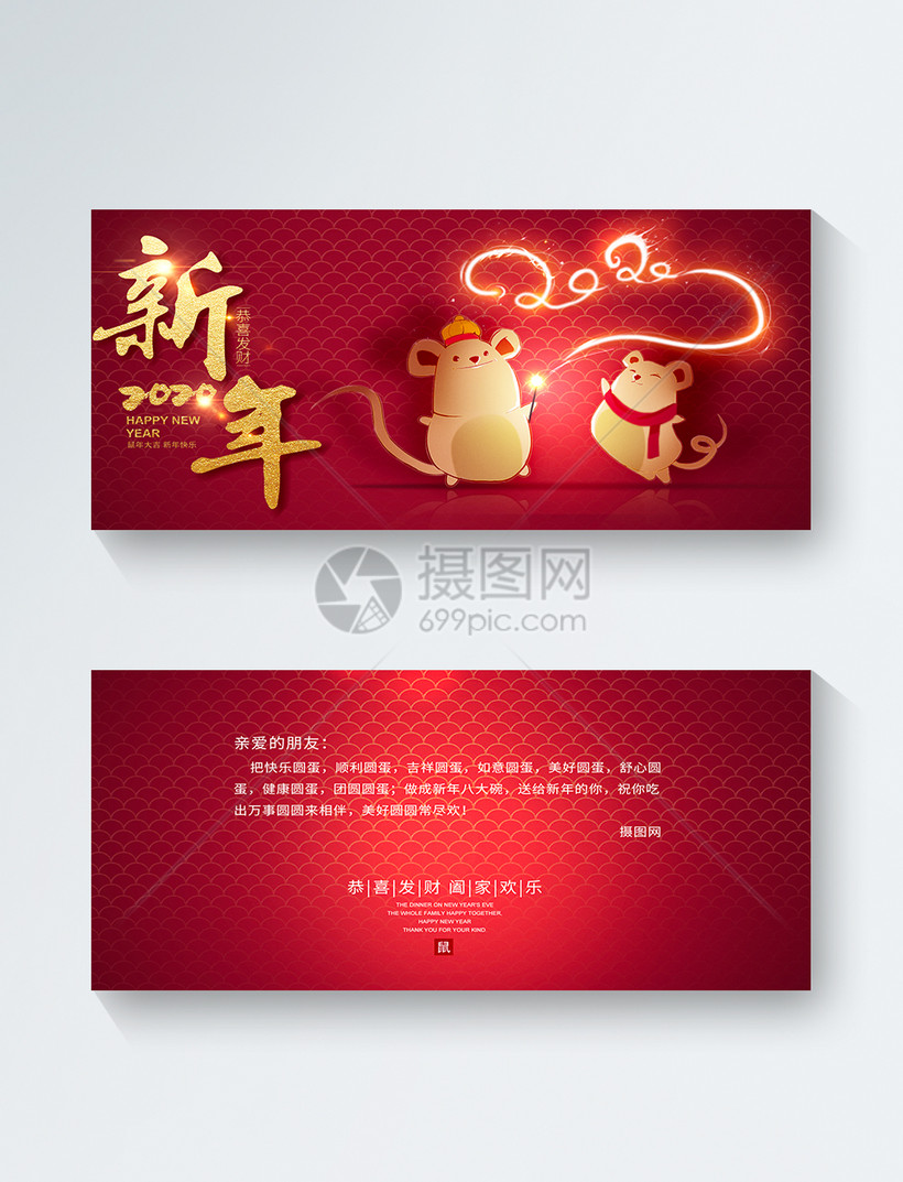 2020鼠年新年贺卡模板素材 正版图片401663611 摄图网