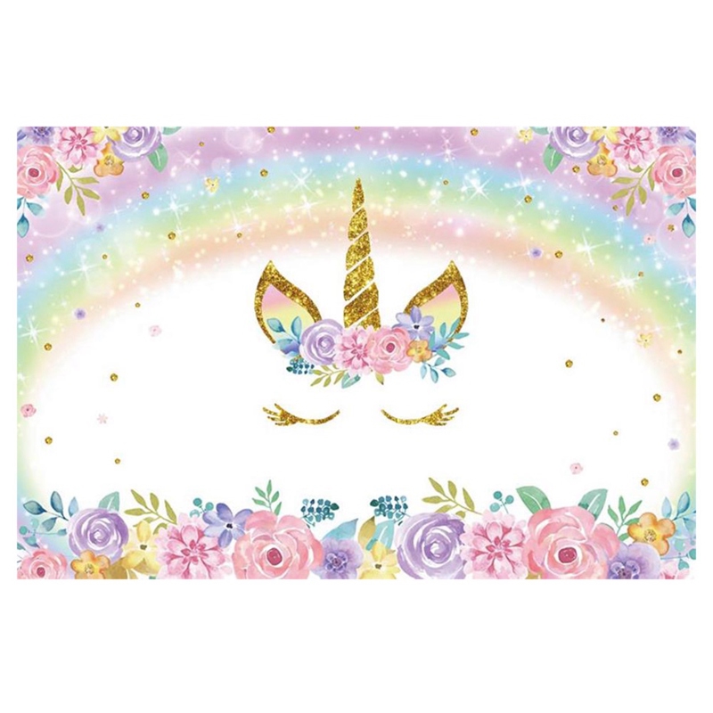Cod Rainbow Unicorn Birthday Backdrop Pink Floral Unicorn Party