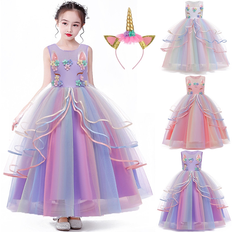 2020 Cute Summer Children Costume Kids Long Unicorn Dress For