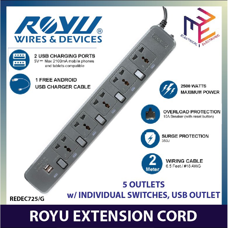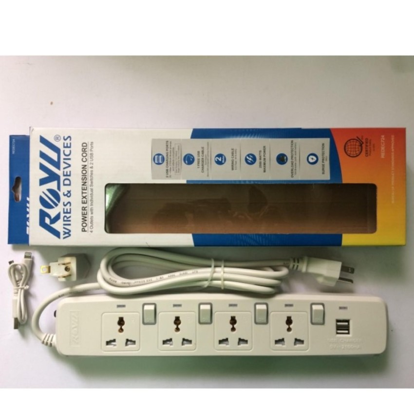 Royu Extension Cord Individual Switch Usb Port Redec725 Shopee