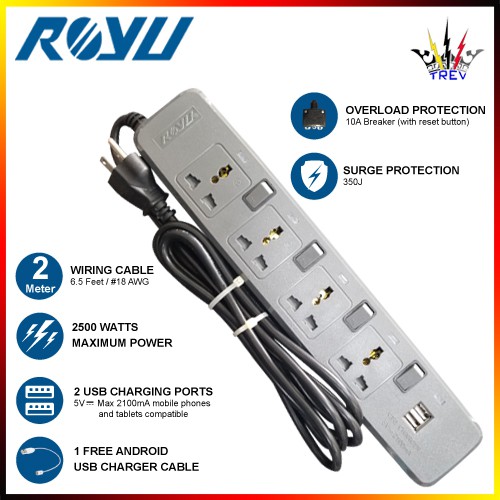 Royu Extension Cord Individual Switch Usb Port Shopee Philippines