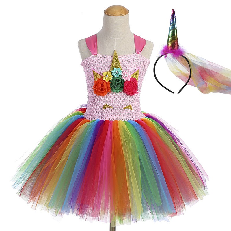 2020 Girls Tutu Dress Fancy Rainbow Princess Unicorn Dress With