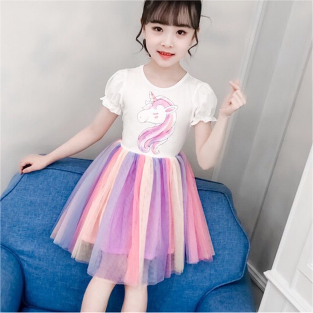 Ready Stock From Jb Rainbow Unicorn Dress 3 15 Years Old Shopee Malaysia